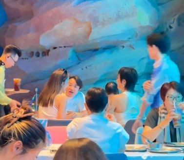 6月17日,在网友分享的画面中,王祖蓝一家人又在餐厅吃饭的时候被偶遇了,当时王祖蓝夫妻俩带着女儿正在吧台点单拿饮料。