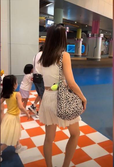 当天李亚男的出镜率还是挺少的,孩子们基本上都是被保姆和朋友带着游玩,从罕见露脸的画面看,李亚男当天身穿白色短裙套装,不得不说这套衣服衬得她肤色有点黢黑,再加上她有些驼背的身材,难以想象这还是曾经获得优美体态奖项的李亚男。